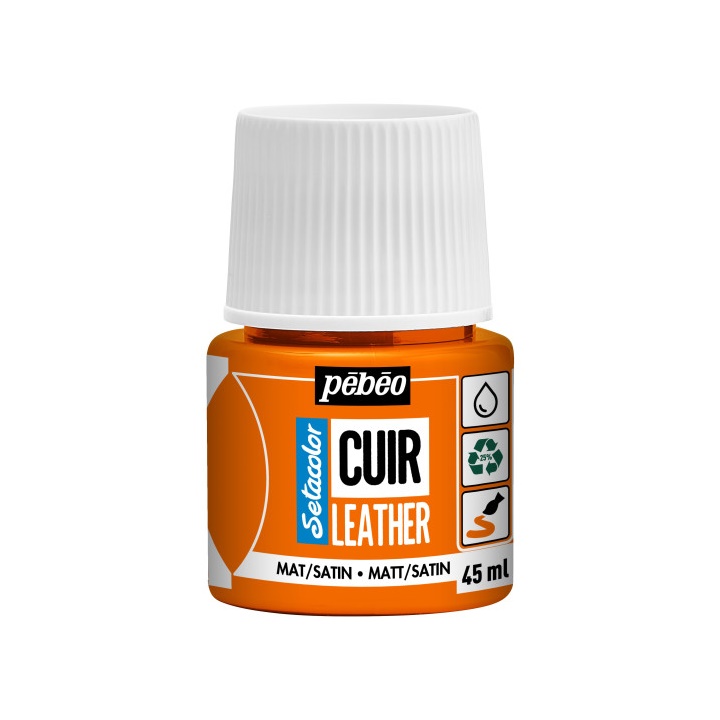 Бојата за кожа Pebeo Setacolor е специјално дизајнирана да вдахне нов живот во вашите кожни предмети. Без разлика дали сакате да оживеете стара кожна јакна, да додадете пица во кожна чанта или едноставно да сте ентузијаст на техниката за сликање кожа , ние го имаме совршениот помошник за вас. Pebeo Setacolor е лесен за употреба и дава извонредни резултати секој пат. Тој е на база на вода и е погоден за сите видови кожа, вклучувајќи мазна кожа, велур, нубук, па дури и синтетичка кожа. Волуменот од 45 ml е идеален за мали до средни проекти. Брзо се суши и обезбедува долготрајна завршница која е отпорна на пукање, лупење и избледување. Откако ќе се нанесе, формира флексибилен и водоотпорен слој кој ја штити кожата од абење, така што долго време изгледа како нова. Бојата може да ја нанесете со четка, валјак, сунѓер, воздушна четка или со матрици или печати.