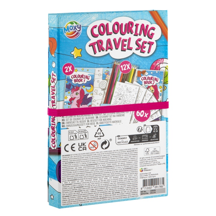 Овој разигран сет за боење за патување е дизајниран да ги забавува малите уметници каде и да одат. Вклучува една компактна книга за боење исполнета со шармантни илустрации со тема од еднорог и сет од 12 големи обоени моливи кои се лесни за држење за мали раце. Погоден за деца на возраст од 3 години и нагоре, овој сет нуди забавен и привлечен начин за развивање на креативност, фини моторни вештини и концентрација за време на патувања, посети или тивко време дома. Книгата за боење нуди многу магични дизајни за истражување, додека цврстите моливи испорачуваат живописни бои кои ја оживуваат секоја страница. Благодарение на својот пренослив формат, таа е идеален придружник за возења со автомобил, одмори, ресторани или како внимателен подарок, поттикнувајќи имагинативна игра на практичен начин без неред.