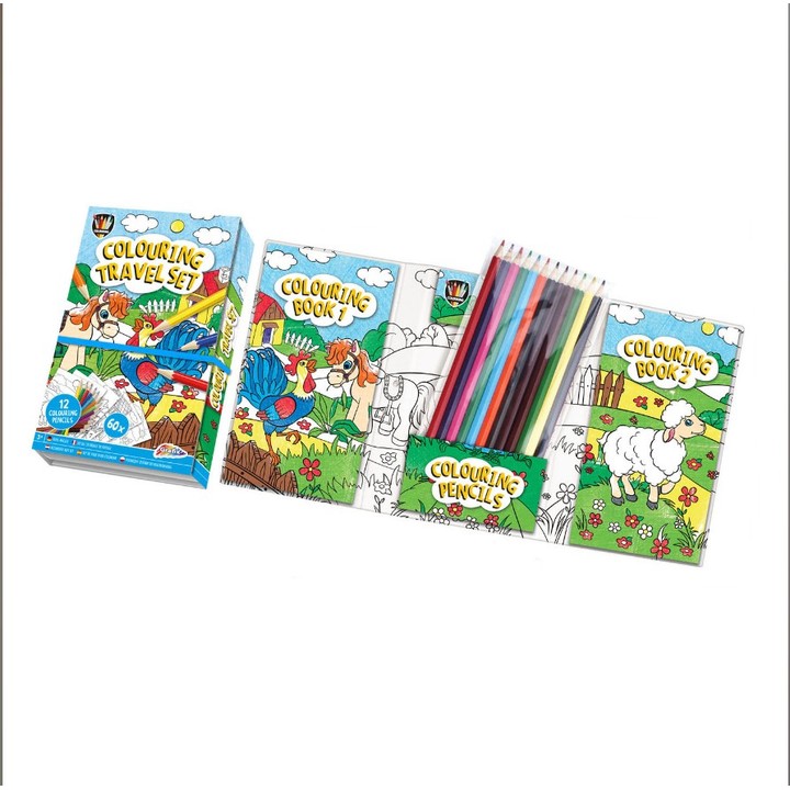 Introduction » Книги и инспирација » Детски сет за боење за патување со 2 книги и 12 моливи
