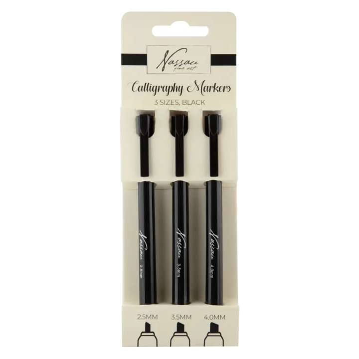 Комплет црни калиграфиски маркери со 3 големини