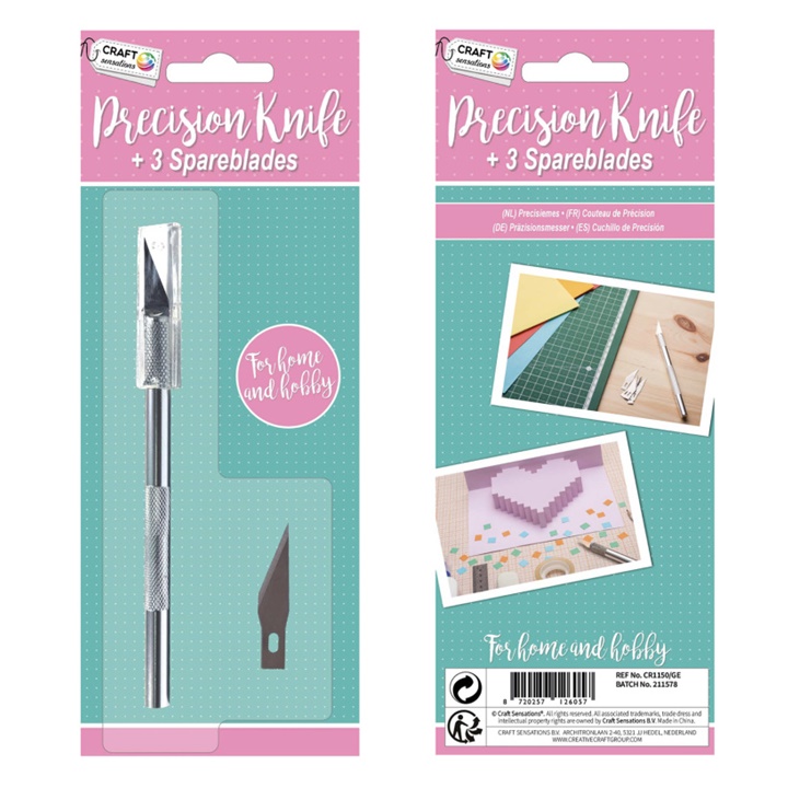 Одличен рачен нож за прецизно сечење. Ножот за сечење e изработен од нерѓосувачки материјали. Тој е незаменлива алатка во сите техники кои бараат прецизно сечење. Скалпелот е идеален за работа со картон, scrapbooking, декупаж, моделирање и др. Сечете ја прецизно и точно хартијата, пената, картонот, фолијата, салфетките за декупаж и многу др.