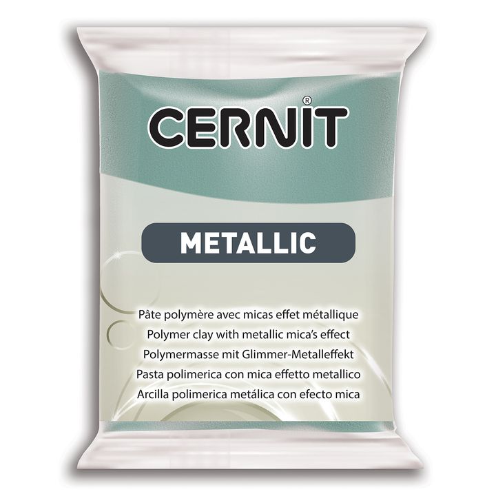 Cernit Metallic е специјална линија на полимерна маса , која се карактеризира со метален ефект и е наменета за секој кој се занимава со моделирање и сака на своите креации да им даде интересен сјаен изглед. Со овој материјал можете да креирате уникатен накит како што се обетки, мониста, приврзоци, како и стилски иглички и брошеви. Благодарение на неговата флексибилност и сјај, популарен е и за украсување чаши, чаши, прибор за јадење или за создавање оригинални украси и додатоци за домот. Погоден е и за заедничко креирање со деца, каде што ја развива нивната креативност и вештини. Cernit Metallic е лесен за работа, еластичен и еластичен материјал кој овозможува удобно моделирање и мешање на бои за да се постигнат нови нијанси. Чистотата е важна кога работите бидејќи масата не остава трага од боја. Реакцијата на температурата е едно од неговите клучни својства - тој е флексибилен на топлина и добива сила на студ, што овозможува прецизно обликување. Откако ќе се обликува, Cernit Metallic се пече во рерна на 110-130 °C 30 минути. По стврднувањето, креациите може дополнително да се декорираат, на пример со акрилни бои и да се префарбаат со посебен лак за поголема издржливост. Стврднатата маса е доволно силна за да се бруси и дупчи. Соединението за моделирање е компатибилно со други полимерни соединенија, што ги зголемува можностите за негова употреба. Погоден е за деца од 8 години и постари и е одличен материјал за почетници и за искусни уметници. Пакувањето содржи 56 грама глина, што е совршена количина за помали проекти или експериментирање со нови техники. Cernit Metallic ви овозможува да креирате оригинални и професионални креации со карактеристичен сјај и текстура.