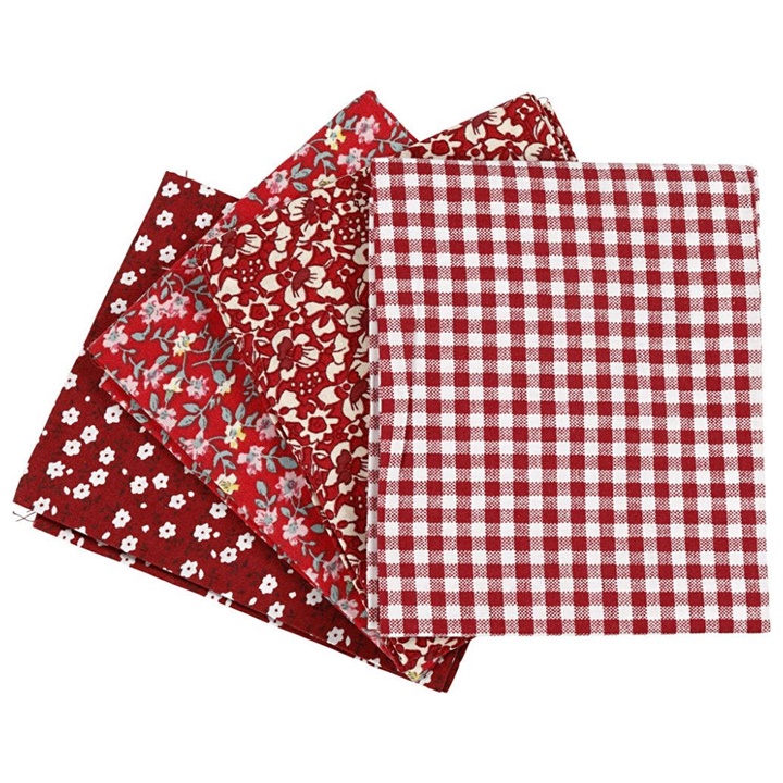 Ткаенина за patchwork - црвена - 4 парчиња - 45 x 55 cm